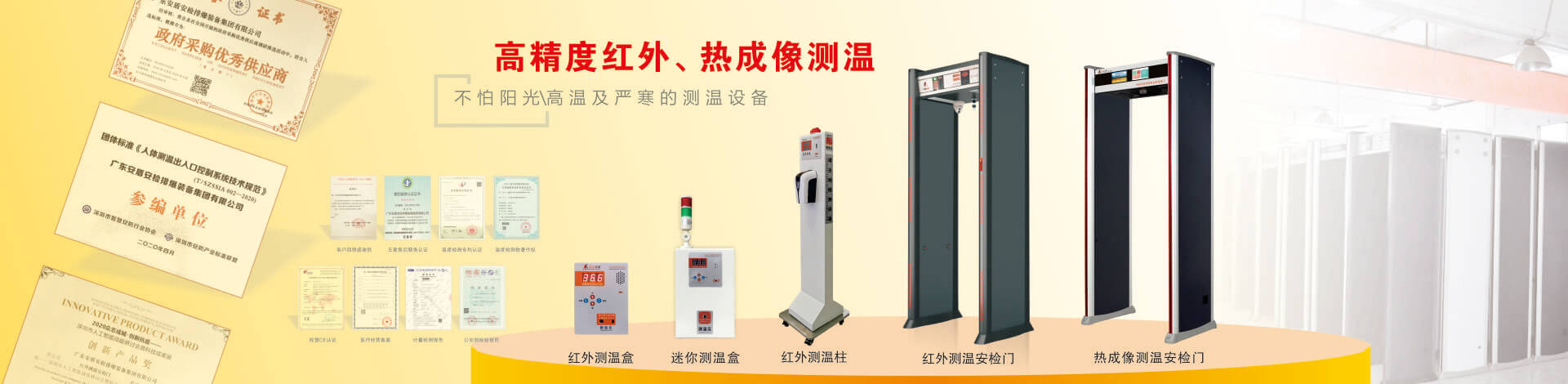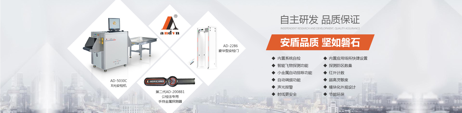 目前公司技術底蘊日益豐厚,擁有多項國家專利,在產品開發(fā)和創(chuàng)新方面有較深的制造經(jīng)驗。“安盾品質 堅如磐石”是安盾人永恒不變的發(fā)展理念,公司目前已通過國際質量體系認證、國際環(huán)境體系認證、國際職業(yè)健康體系認證、產品已通過國家安全防范報警系統(tǒng)檢測中心和公安部安全與用電子產品質量檢測中心合格認證,并取得所有型號檢測報告,《GB15210-2003通過式金屬探測門》標準;并獲得國家高新技術企業(yè)認證、國家AAA級信用認證,歐盟CE認證、ROHS認證、美國FCC認證、廣東職業(yè)衛(wèi)生檢測中心頒發(fā)的檢測報告、東莞市環(huán)境保護局頒發(fā)的《輻射安全許可證》,中國人民解放軍認證產品、中華人民共和國進出口企業(yè)、愛心公益企業(yè)等榮譽稱號;先后被當選為中國安全防范產品行業(yè)協(xié)會會員單位、廣東安防行業(yè)協(xié)會理事單位、東莞市安防行業(yè)協(xié)會常務副會長單位、中國安檢排爆聯(lián)盟常務理事單位、連續(xù)五年榮獲廣東省守合同重信用企業(yè)、中國警用裝備十大品牌、中國十大特種裝備品牌、科技型中小企業(yè)、廣東省高新技術產品等榮譽稱號、安盾集團平均每年服務至少200場大型活動安保任務。